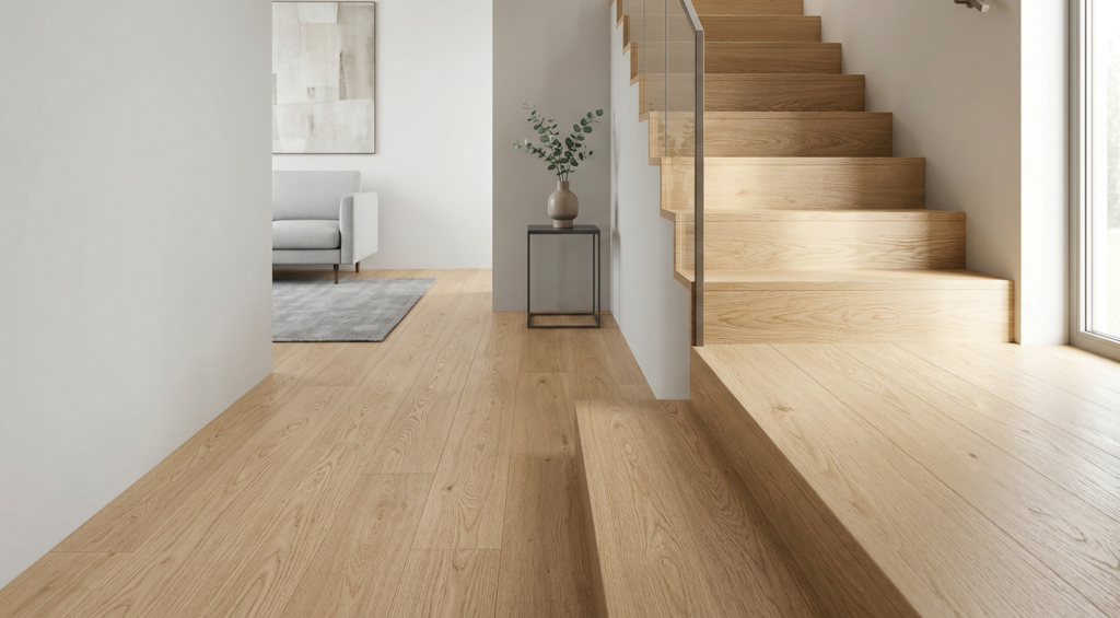 Our SPC floors, water-resistant laminates, and matching stair solutions deliver realistic wood textures, durability, and advanced technology. Ideal for residential and commercial spaces, they provide style, reliability, and seamless coordination across floors and stairs.